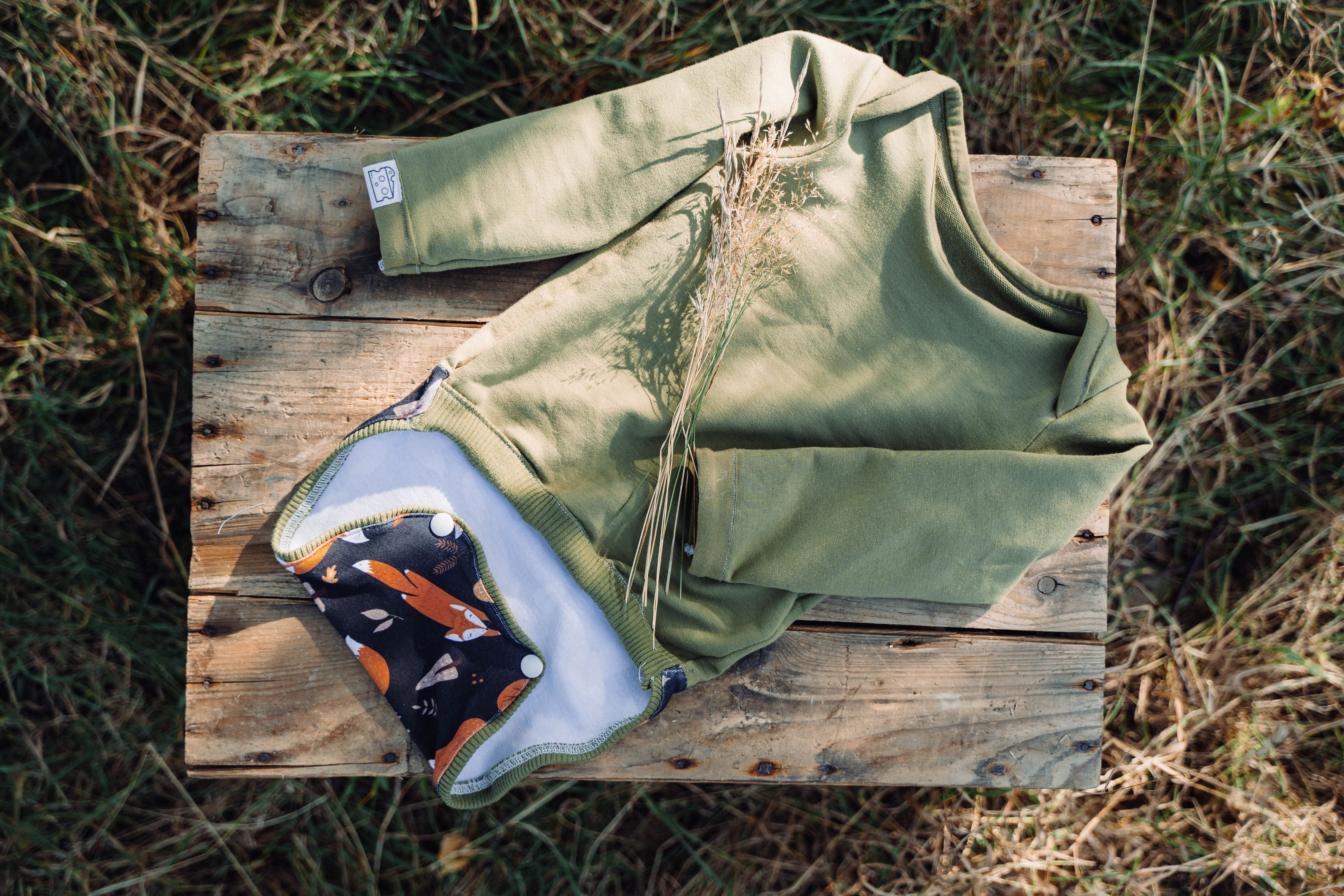 Unsere Lösung? Ein Body mit extra langer Rückenklappe, die vorn einfach an den Druckknöpfen der Stoffwindel befestigt wird.