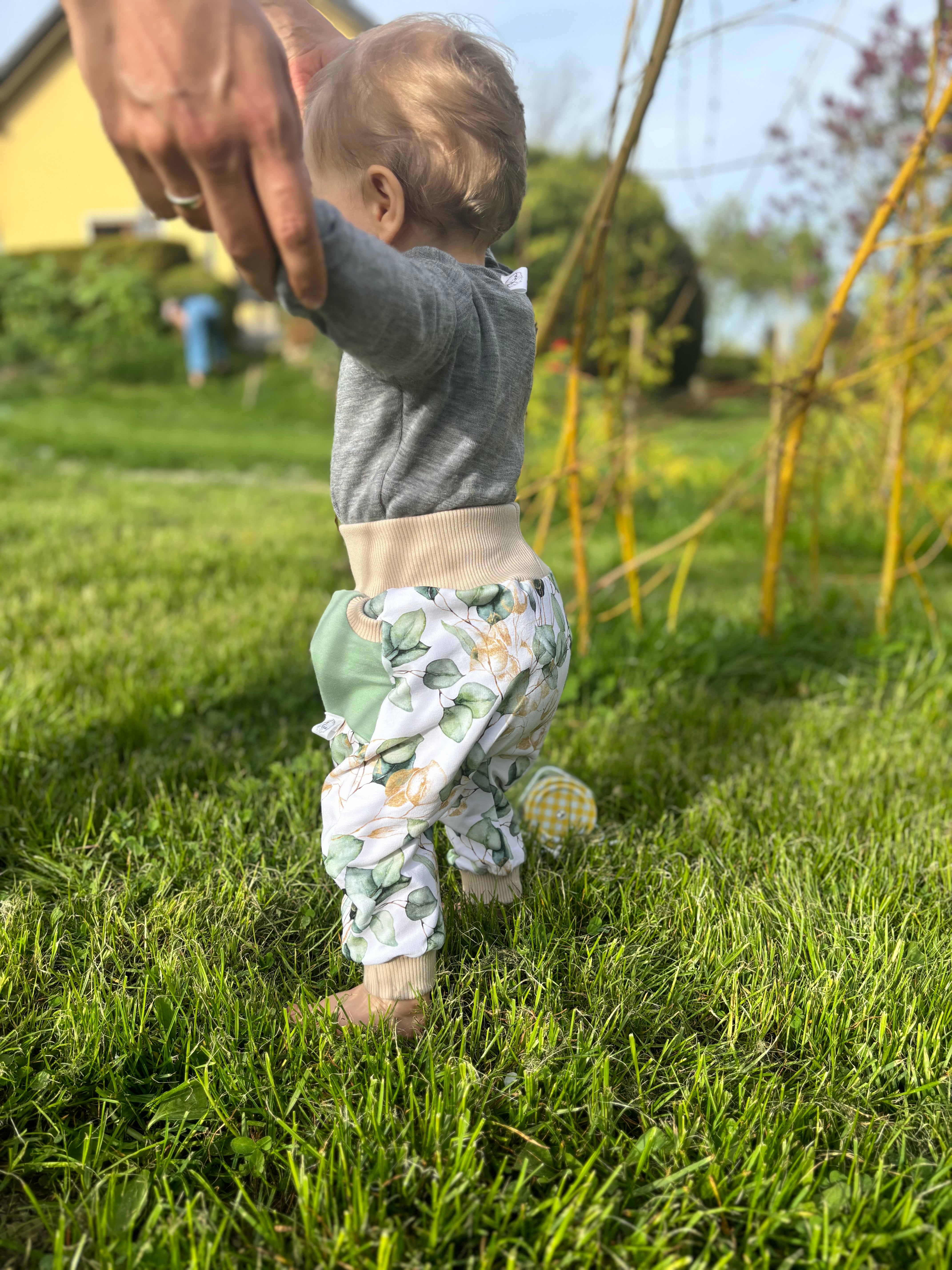 Unsere Pumphosen bieten ganz viel Platt und Bewegungsfreiheit, auch mit Stoffwindel darunter.